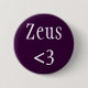 Um crachá roxo "Coração Zeus". Zeus era o rei dos deuses gregos antigos, e também o deus dos relâmpagos.