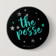 Inicie a festa com esses divertidos botões "Disco Bachelorette" em prata cintilante e azul-turquesa em um fundo preto. A tipografia "o grupo" que chama a atenção é acentuada por estrelas. Adicione a data do seu evento usando o modelo fornecido. Procure ID925 para ver outros produtos da coleção da moda.