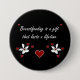 Este botão caracteriza a leitura do texto que amamenta é um presente que dure uma vida decorada com corações e flores.