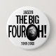 Foto da festa do aniversário de 40 anos preto e branco divertido e crachá do botão do pino do nome. Uma ideia excelente de juntar diversão a uma quadragésima festa de aniversário. Personalize com seu próprio nome e ano de nascimento até o ano atual, a amostra lê Jason, os quatro grandes! Outros itens correspondentes estão disponíveis. Design por Sarah Trett para www.mylittleeden.com no Zazzle.
