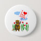 Pino com minha design de um personagem de castor segurando uma placa que diz "Eu coração a Nova Escócia" com um coração vermelho e flores.