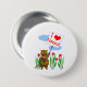 Botão com minha design de um castor segurando uma placa que diz "Eu coração Nunavut" com um coração vermelho e flores.