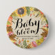Elegante Vintage Chá de fraldas / Bebê no botão Bloom Pinback. Folhas Elegantes do Maple de Outono, Pumpkins e Girassóis. Um Design perfeito para o seu grande dia. Todo estilo de texto, cores, tamanhos podem ser modificados para ajustado das suas necessidades.