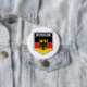 A bandeira nacional da Alemanha é infundida em forma de escudo e o emblema do país é colocado no centro da bandeira. O nome do país da Alemanha está acima da imagem, mas dentro a forma do escudo.