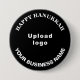 Feliz Hanukkah! Desejando alegria, paz e abençoando este festival de luzes. Um feriado para comemorar este mês de dezembro e anunciar também o seu negócio. Botão de forma redonda que você pode personalizar para colocar seu nome comercial, logotipo e com saudação de Hanukkah. Personalize-o e use-o como acessório uniforme para saudar seus clientes ou clientes neste Chanucá e para anunciar também sua empresa ou para promover seu nome de marca. Acessório personalizável de roupas que você pode usar como material de marketing para criar reconhecimento de nome de marca. As cores design são textos brancos sobre fundo preto. Verifique a aparência após carregar o logotipo da sua empresa e digitar o nome da sua empresa. Se a aparência lhe agrada, você pode colocar seu pedido agora. Se você precisar redimensionar e mover o logotipo e o nome da sua empresa para o ajustado neste botão ou no tamanho que você escolherá, mude na ferramenta design. Você também pode alterar a cor do plano de fundo, a cor da fonte e o estilo da fonte na ferramenta design. Feliz Hanukkah! Desejando mais vendas neste feriado.