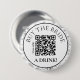 Certifique-se de que a noiva nunca tenha um copo vazio com este Botão de QR Code "Compre um Drink para a Noiva" com design Moderno Botânico. Este acessório funcional e elegante faz parte da linha "Taylor & Jordan", combinando uma divertida tradição de despedida de solteira ou chá de noiva com uma estética contemporânea e limpa.