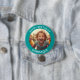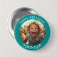 Botão de aniversário feliz de nome e foto personalizável. Quadro teal com texto branco.