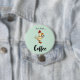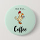 Botão de café engraçado com frango que diz "...mas primeiro Café"