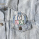 Personalize este botão bonitinho com o nome que a mãe deve ser. O botão Divertido tem um bebê ABC com blocos cor-de-rosa, azul e verde. O fundo é um design de faixa azul. Favoritos de chá de fraldas de excelente para todos os seus convidados. graphicsandbits/kristiw
