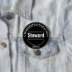 Um crachá para um Event Steward. Altere o texto para seus detalhes. Crachá Steward. Crachá oficial de guarda. Preto & Branco.