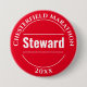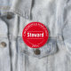 Um crachá para um Event Steward. Altere o texto para seus detalhes. Crachá Steward. Crachá oficial de guarda. Vermelho e branco.