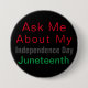 Vermelho, preto e verde me perguntam sobre o meu botão Dia da Independência, 12 de junho. Comece uma conversa sobre um dos mais recentes feriados federais reconhecidos a nível nacional desde junho de 2021. Design por Ms_Jade. © 2021 Ms_Jade