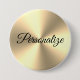 Botão grande de pinback metálico brilhante. Pinos personalizados para aniversário, Natal, festas corporativas, Véspera de ano novo, casamento, evento, celebração etc. Faça seu próprio crachá de nome para amigos, família, convidados, funcionários, clientes, colegas de trabalho, clientes, damas de honra, madrinha de casamento, matriz de honra, floristas, mãe da noiva etc. Disponível em tamanhos pequenos e extras grandes. Modelo de tipografia de script elegante com brilho ouro.