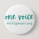 O botão One Voice da Michigan Pet Alliance, que beneficia o bem-estar animal em Michigan.