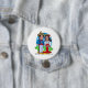 Um botão de três polegadas com o gráfico mexicano do casamento de Tara e de Tim