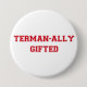 " Terman-aliado dotado" em letras vermelhas do estilo do time do colégio em a pino-no botão. Escolha de 6 tamanhos e formas diferentes. Quem era Terman? Era o criador - do teste de Binet IQ.