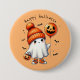 Entre no Espírito de Halloween nesta temporada de Férias! Conjugue um Halloween inesquecível e deliciosamente estranho com este Botão de Halloween Louco. O Trabalho de arte apresenta um Fantasma Bonito que está a esportizar um Chapéu de Knit Laranja e tênis. Ele está segurando um Balão de Pumpkin, e está segurando um Balde Jack-O-Lanterna para seu doce de Halloween. Os morcegos enchem o céu noturno. O Verso diz, "Feliz Halloween." Personalize este Botão do Dia das Bruxas para o seu conteúdo! É um acessório essencial para o Halloween Holiday Season!
