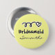 Botões de mama amarelo pastel personalizados com coração de amor branco e fonte elegante. Impressão para festa de solteira, chá de panela e festa de casamento. Visite nossa loja de diversão para designs mais elegantes e ricos para casamento. Cor de fundo personalizável.