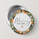 Este pino de botão apresenta laranjas limpas de aquarela e uma fonte bonita escrita à mão com o ditado "mamãe a ser". Este botão neutro por gênero é o acessório perfeito para o seu chá de fraldas ou revelador de gênero.
