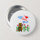 Botão com minha design de castor em frente a algumas flores segurando uma placa que diz "Eu coração Quebec".