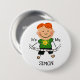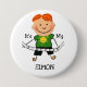 Um bonitinho design de aniversário com figurinha de pau, com um menino bonitinho com cabelo vermelho em uma camisa verde, shorts pretos, e texto que diz É Meu Aniversário. Adicione o nome do seu filho facilmente para personalizar este botão de aniversário de bonitinho bonitinho.