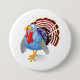 Bóton Redondo 7.62cm Cartoon Azul Engraçado Turquia com Penas Patriotas