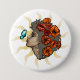 Chapa con la ilustración Primavera. Técnica mixta: dibujo y sombreado analógico (tinta y copic) y color digital.