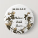 Este botão é uma bela adição a uma chuva de noivas temática de vinho. O botão apresenta um belo desenho vintage de uvas, folhas de uva e videiras, juntamente com o seu nome e data da chuva de noivas. O esboço antigo fornece uma moldura botânica para o texto personalizável.