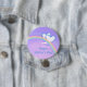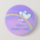 Botão com minha design original de um arco-íris e dois corações brancos e azuis num céu roxo. O texto diz "Dia de as mães Feliz!"