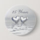 Botão com minha obra de arte original de uma cena colorida de prata com dois corações prateados flutuando na água. O texto personalizável diz "25 anos".