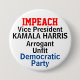 Impeach está escrito em texto vermelho. Democrata é escrito em texto azul para a cor do partido. Jurou no cargo em 20 de janeiro de 2021 U.S. V.P. Olhando os dados que seu pai é cidadão jamaicano e sua mãe é da Índia, nem uma cidadã naturalizada dos EUA, nem uma residente legal permanente no momento do nascimento de Kamala em 1964, então como ela pode ser uma cidadã natural nascer, de acordo com a Constituição americana que se escreveria.