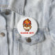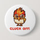 Um frango com aparência irritada, com a frase 'cacete' em um botão de pino