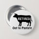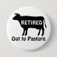 Vaca de aposentadoria engraçada "Saída para Pastura" dizendo botão. Perfeito para qualquer pessoa nos negócios relacionados à agricultura, para amantes de vacas, e simplesmente para ser bobo.