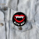 Lábios de vampiro engraçados e presas me mordam crachá de botão do Dia das Bruxas. O texto é personalizável para que você possa adicionar sua própria mensagem
