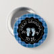 Botão de chá de fraldas de bebê com padrão de xadrez azul para o EXCELENTE GRANDMA ser. Xadrez azul e preto.