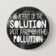 Com a sua legenda branca sobre um fundo negro fumegante, este alfinete desperta a consciência sobre a poluição: faça parte da solução, não faça parte da poluição!