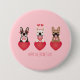 Ilustração de três cachorros franceses do Bulldog de diferentes cores saindo de corações vestidos de trajes de Dia de os namorados.