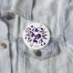 Este botão divertido apresenta uma "explosão" de bolas e cinzas de futebol roxas e brancas de tamanho variado, em formas roxas e de estrelas brancas - um padrão de pequenas cobrir, a estrela roxa - personalize com o nome do atleta & número de camisa - por katz_d_zynes