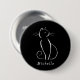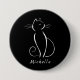 Gato branco minimalista num botão preto de fundo. Personalize este botão elegante com o seu nome.