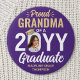 Show your joy for the graduating senior with a stylish custom photo "Proud Grandma" round graduation button. The picture and text on this template are simple to personalize. The colors and font styles can be changed with the Zazzle Design Editor tool. Customize this button for any family member or friend, such as mom, dad, grandma, nana, grandpa, sibling, parent, aunt, uncle, sister, brother, cousin etc. Featuring elegant modern typography and stylish calligraphy script, the purple and gold design includes the graduate's photo, name, and class year. Please note that the gold is printed color, not metallic foil. This keepsake accessory adds a unique touch to a commencement ceremony or graduation party outfit. Congratulations to the graduate!
