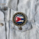 Este características gráficas originais a bandeira do grupo de Cuba dentro de um quadro circular do metal. A bandeira cubana tem a aparência de ser sob uma parte de vidro com uma reflexão clara visível na parte superior do design. A bandeira tem uma textura áspera adicionada que contraste o revestimento liso do quadro de aço inoxidável. Os grandes rebites aparecem no quadro circular que dá ao teste padrão um olhar industrial forte. As folhas de placas de aço envelhecidas são parte externa visível do quadro com um teste padrão de aço da malha que aparece dentro atrás. Este design industrial tem-lhe uma sensação do steampunk e é-o uma maneira à moda de mostrar fora seu patriotismo.