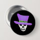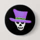 Divirta-se com este pino de crachá com um crânio de esqueleto branco com um chapéu roxo. Excelente para vestir festividades, festas e reuniões de Halloween. Este crânio veio da arte original pintada à mão, apresentando três esqueletos dançarinos com um chapéu roxo nos crânios e nas cores preto, branco e roxo. Procure meus outros produtos com esta arte para produtos de luxo para o Dia das Bruxas, incluindo cartões de saudação, camisetas, posters, decalques de parede, capas de dispositivos eletrônicos e muito mais. Totalmente personalizável para personalização. A arte original é de Phyllis Dobbs que deseja um feliz e glorioso Dia das Bruxas.