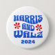 Harris & Walz Retro Flores Vermelhas botão redondo. 2024 é editável.