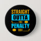 O botão de Hockey da Caixa da Penaldade apresenta paus de silhueta e bastões de hóquei com texto que lê Hetero fora da Caixa da Penalty!
