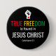O moderno botão "LIBERDADE VERDADEIRA", em JESUS, que orgulhosamente declara que VERDADEIRA LIBERDADE SE ENCONTRA NO CRISTO JESUS. Baseado no verso Bíblia dos Galatianos 5:1. O verso de script é PERSONALIZÁVEL para que você possa substituir pelo seu nome.