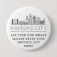 Um botão personalizável representando a bela cidade de Kansas City. Este botão apresenta uma ilustração estilizada e deco do horizonte único da cidade junto com seu nome embaixo. Por baixo do nome da cidade está um lugar para o seu slogan ou afirmação exclusivo sobre a sua cidade favorita.