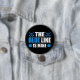 O botão da Linha Azul de Hockey apresenta pincéis azuis e bastões de hóquei com texto branco e azul que lê A Linha Azul é Minha.