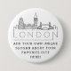 Um botão personalizável representando a bela cidade de Londres, Inglaterra. Este botão apresenta uma ilustração estilizada e deco do horizonte único da cidade junto com seu nome embaixo. Por baixo do nome da cidade está um lugar para o seu slogan ou afirmação exclusivo sobre a sua cidade favorita.
