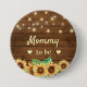 Botão "Mamãe a ser" para um chá de fraldas temático de girassol rústico. O texto pode ser personalizado para qualquer membro da família, amigo ou parente. Convites, inserções, placas, decorações de festas, etiquetas de favorecimento e muitos outros podem ser encontrados em minha coleção de girassol feliz.