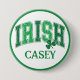 Mostre seu orgulho irlandês com este botão divertido que mostra a palavra "IRISH" em uma fonte retrorreflectora curvada em cores angustiadas de verde claro e escuro. O nome do monograma coordena-se perfeitamente numa fonte decorativa verde angustiada.
